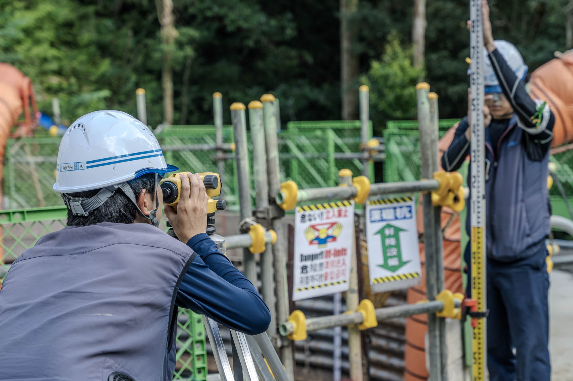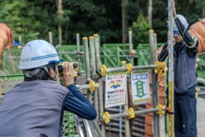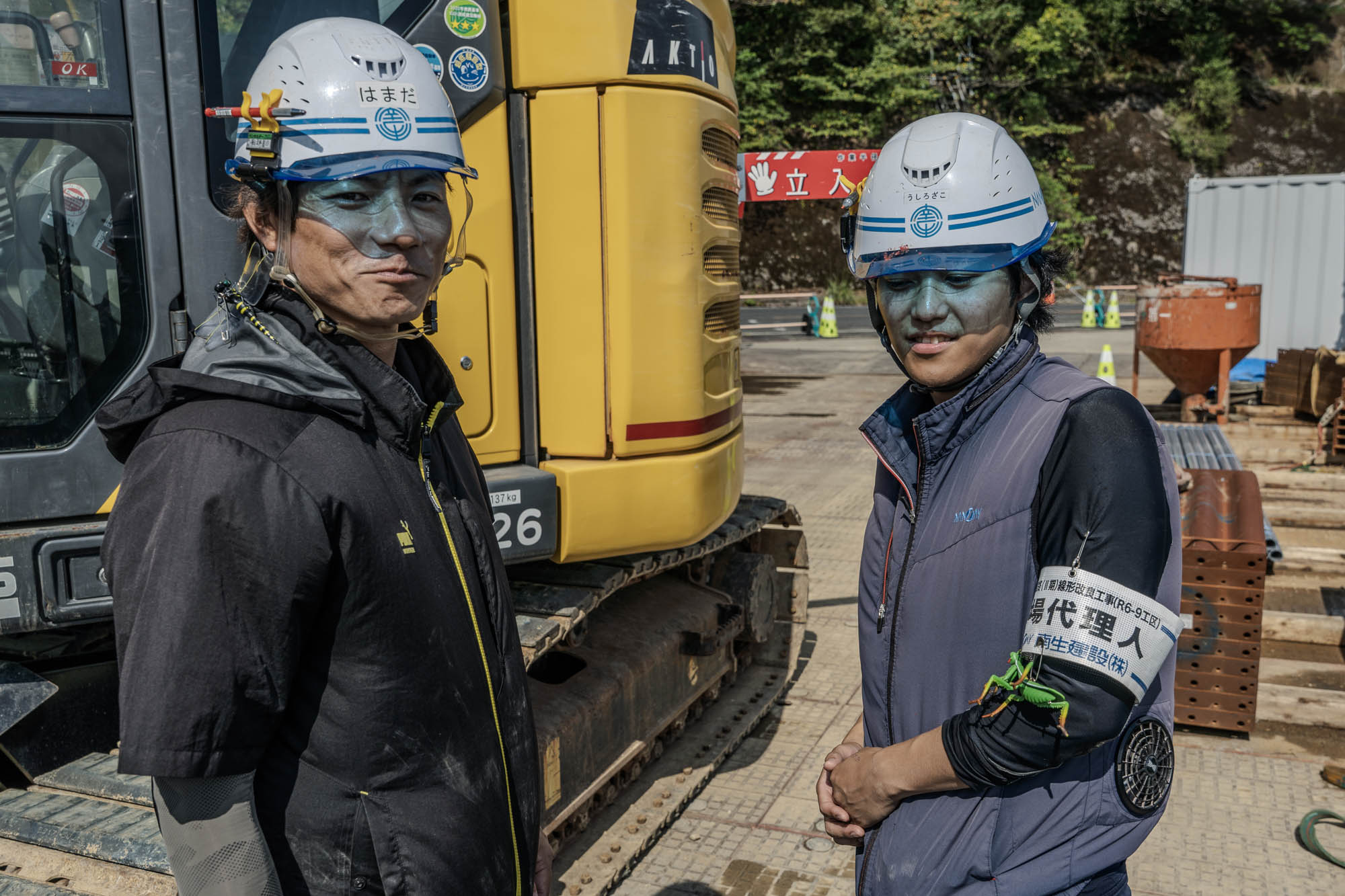 この現場は南生建設の若手社員さんが活躍していました。所長さんも若く、みんなで仲良さそうな場面もお見かけしました。訪問時はまだ暑かったため虫も多く、トンボやカマキリの虫除けを着けて作業を頑張っていました。