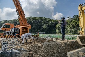 下部工の設置作業は穴を掘り終えてから。これからがむしろ本番となります。