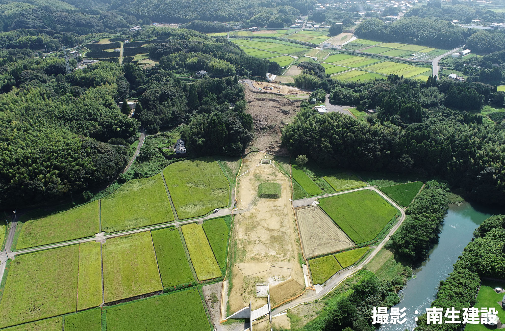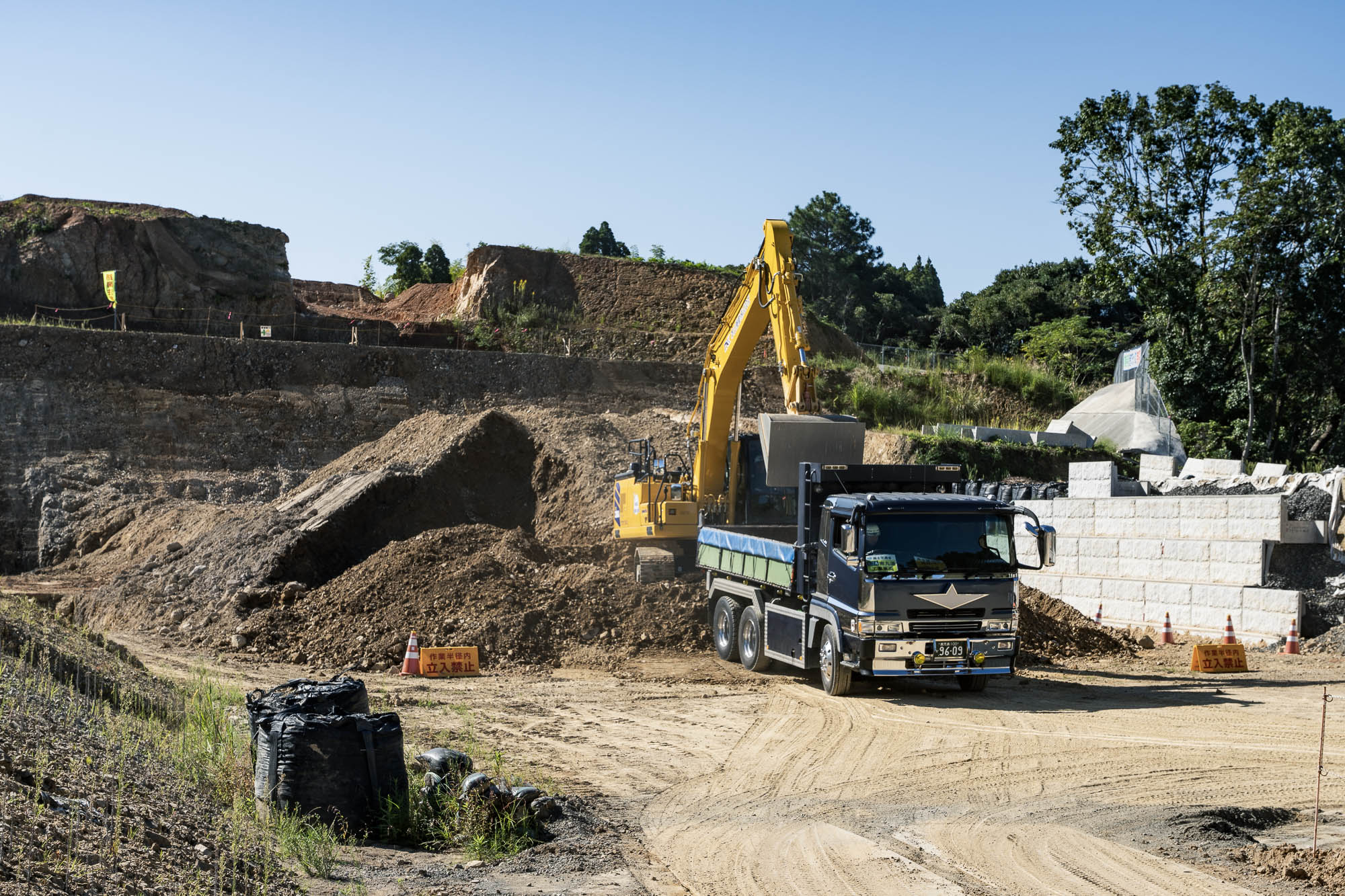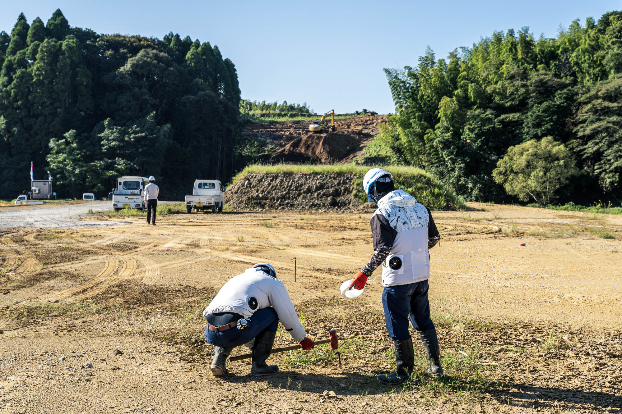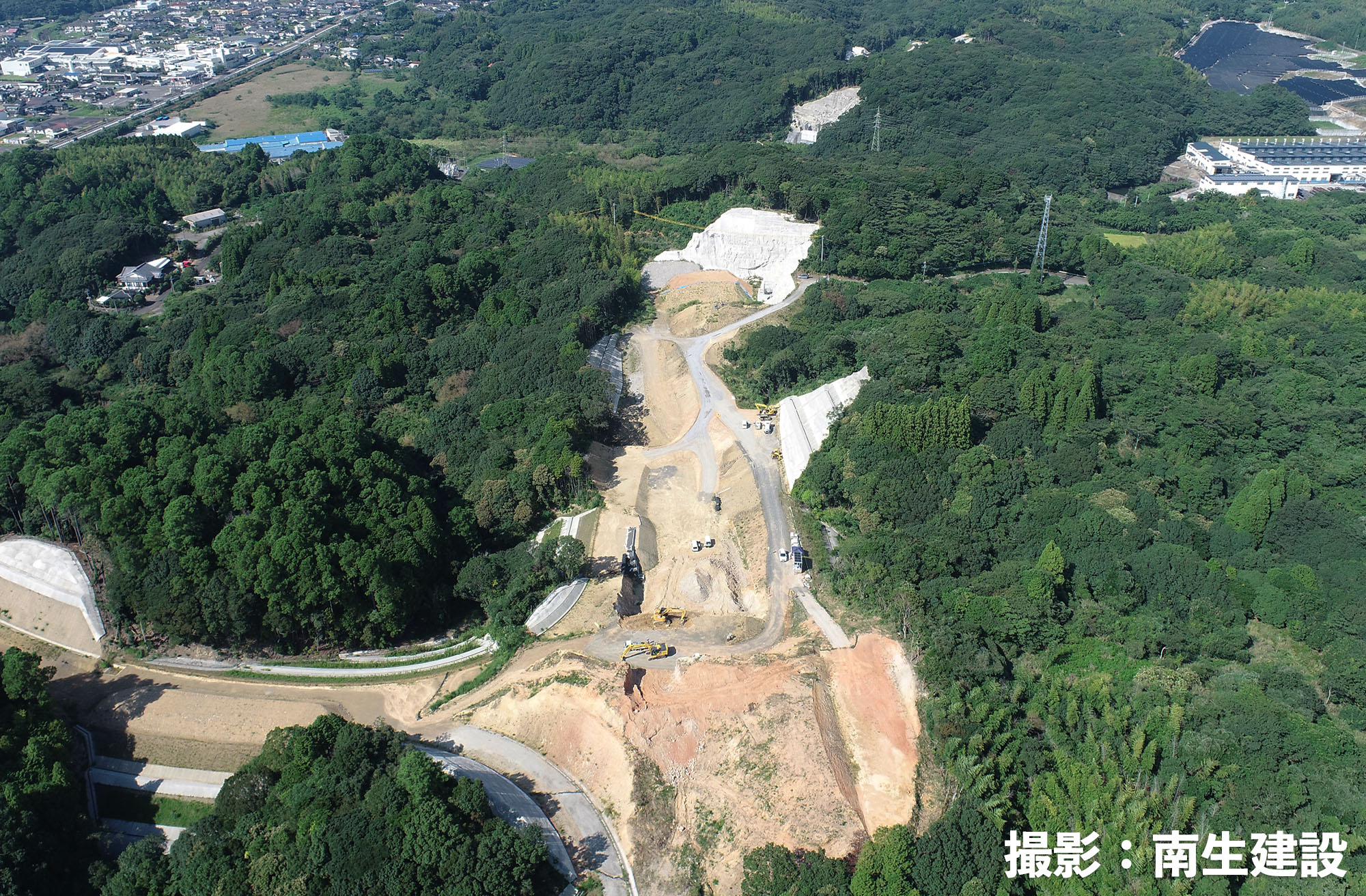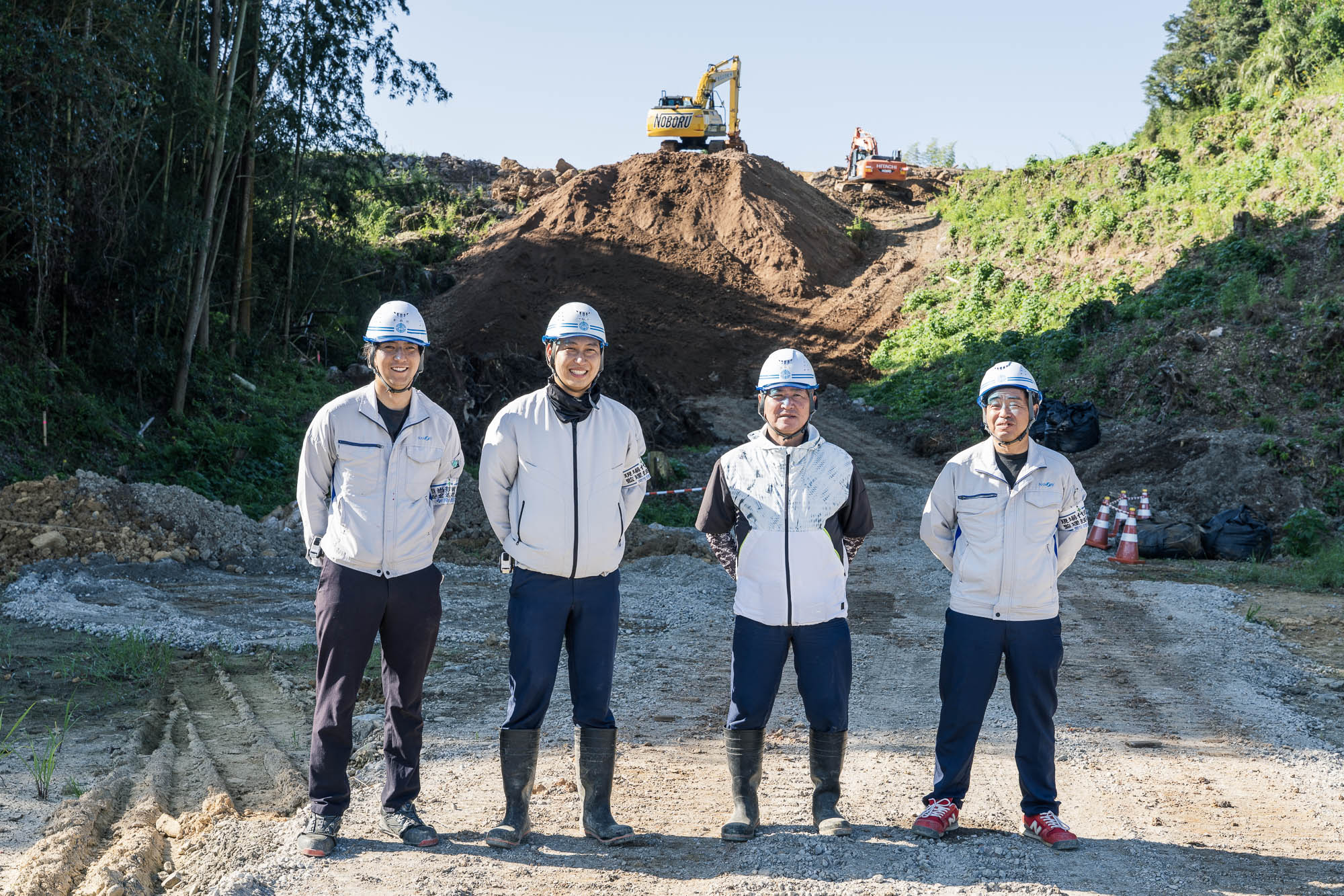 今回、南生建設はここに道を通すため山を削り、土地を均す作業をしていました。