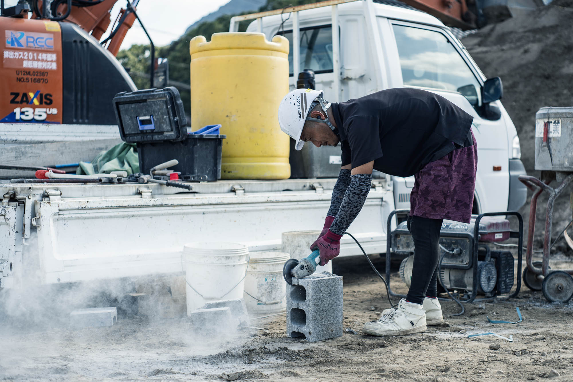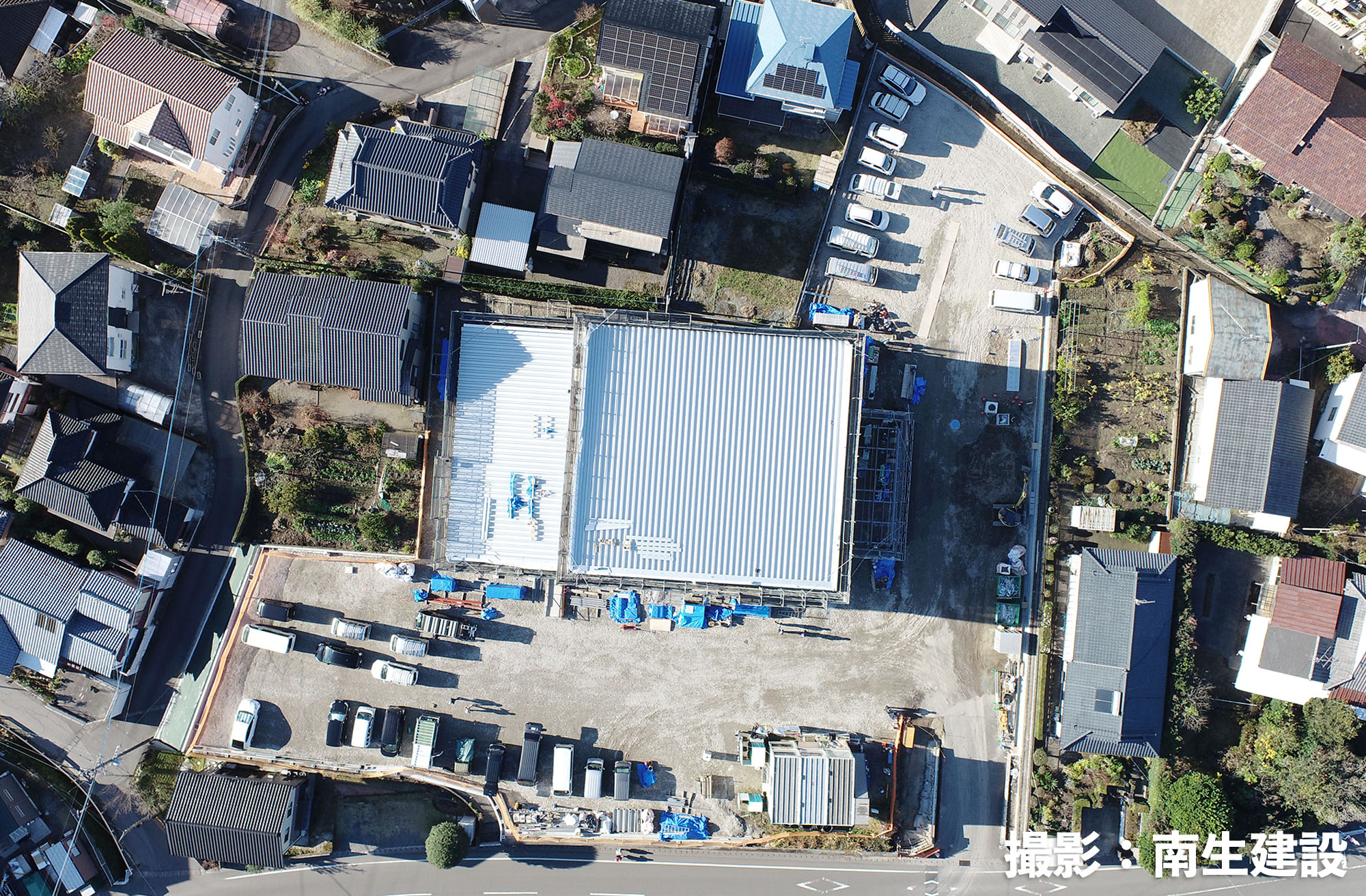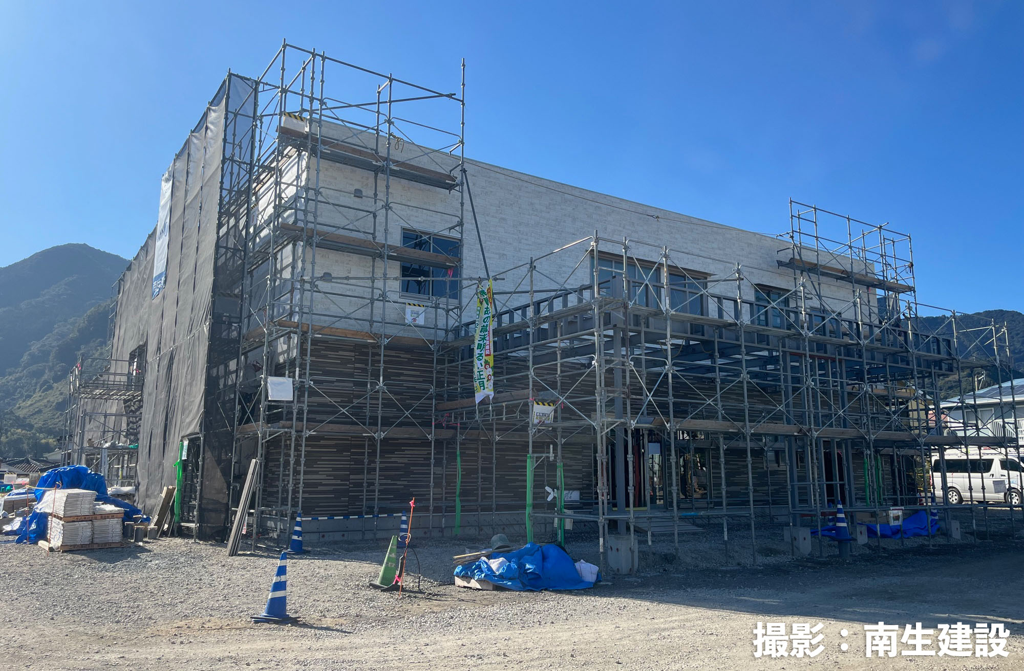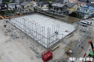 この現場の南生建設の社員さんは3名。所長は以前薩摩川内の現場(株式会社アルナ)でもお世話になった篠原所長。今年入社したばかりの高峰さん(女性)も研修という形でこの現場に入っているそうです。篠原所長がいるからなのか、南生建設の建築部門は女性が増えてきている印象があります。