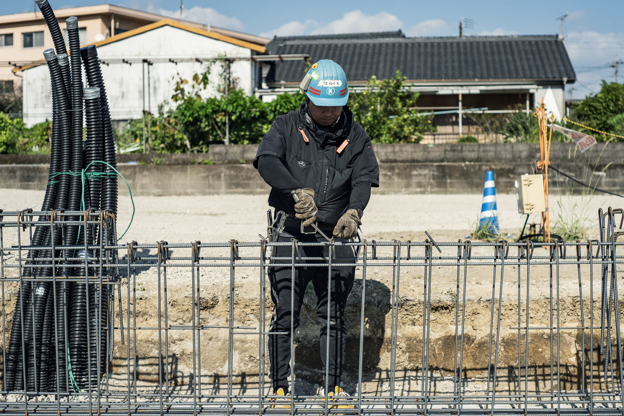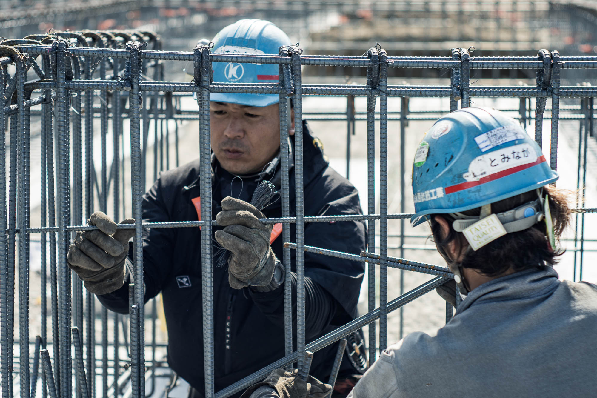 しばらく職人さんたちのお仕事を見させていただいたのですが、鉄骨にクルクルっとすばやく針金を巻いて固定する動作に無駄がなくかっこよかったです。