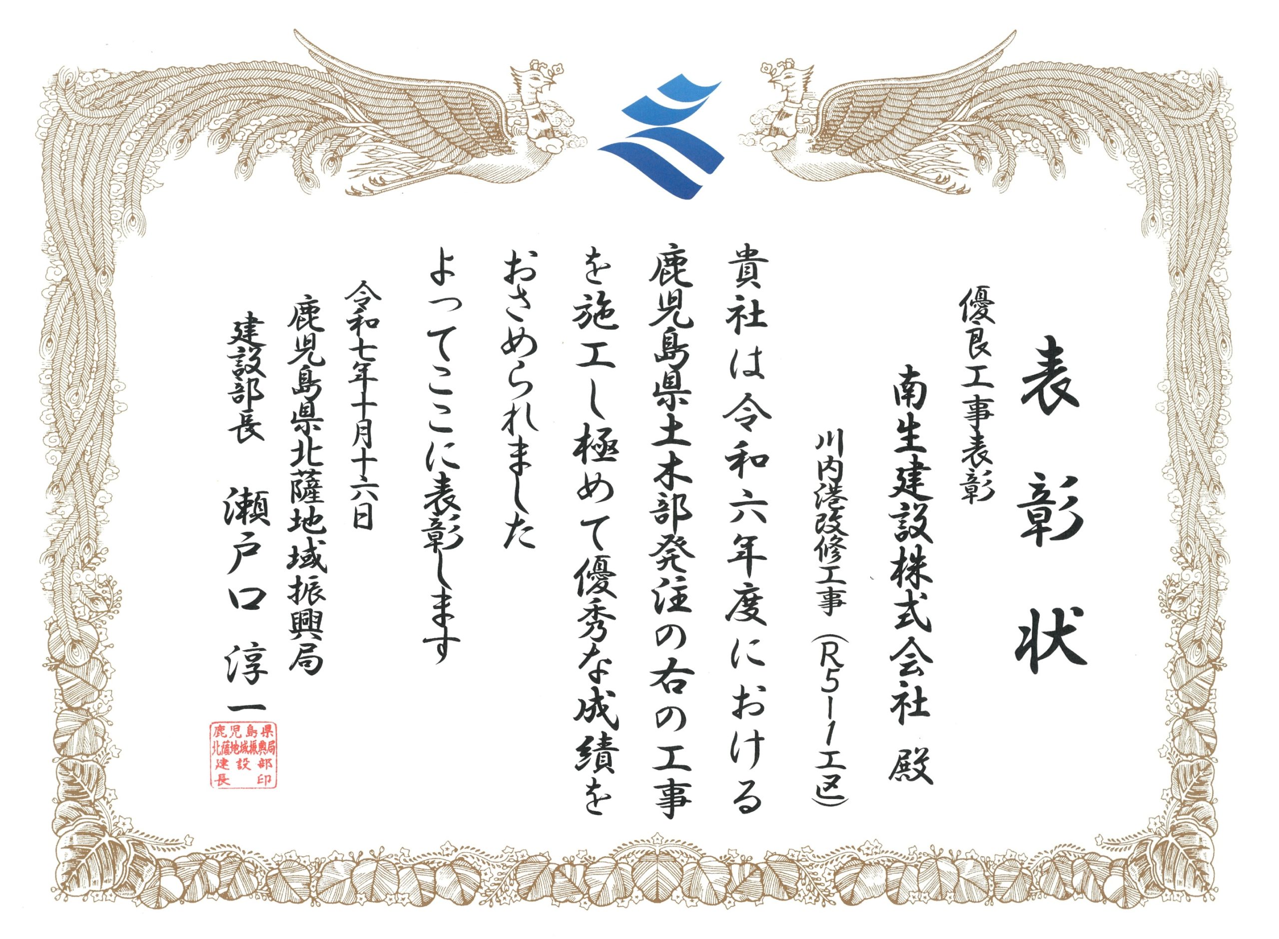 令和7年度の鹿児島県土木部優良工事等表彰の表彰式が県内の各地域振興局で行われ、